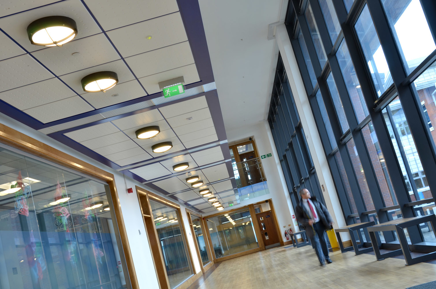 Die Radiance Korridor besitzt eine asymmetrische Lichtverteilung, so dass sie außermittig montiert werden kann und dennoch die gesamte Breite des Korridors gleichmäßig ausleuchtet.